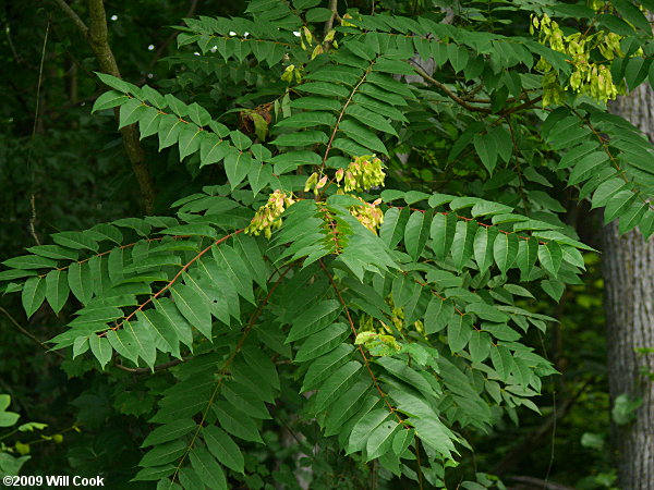 pfafailanthus altissima je drvo iz porodice simaroubaceae a dolazi nam sa sušnih planinskih dijelova centralne kine, i definitivno je najagresivnija invazivna vrsta koja nas je ikad spopala... u posljednjih desetak godina u pojedinim dijelovima balkanskog poluostrva ova vrsta toliko se proširila da često ne samo da ugrožava biodiverzitet nego je u pojedinim slučajevima (neki otoci na jadranu) devastirala nativni ekosistem skoro u potpunosti, i predstavlja jedinu biljnu vrstu... praktično otporan na sušu, ailanthus raste brže od bilo čega u blizini, i na svim mogućim vstala tla od najkiselijih do najalkalnijih, pa čak i na gomilama šuta po gradovima, a ako ga čak i iščupate zajedno sa korijenom ponovo će izrasti čak i iz najmanjih dijelova korijena koji su ostali u zemlji... ailanthus ima šuplje stablo što mu je dobar trik za brz rast, koje se kasnije popunjava, pa mu drvo nije korisno čak ni za loženje, a uz to ima i jako neprijatan miris.