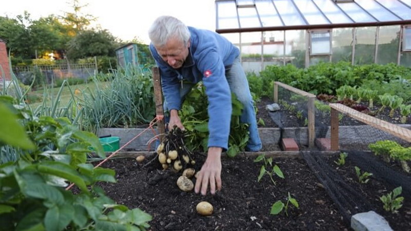 Krumpir se, naravno, sadi u zemlju, ne raste na stablu. U zemlji se razvija i iz zemlje ga se vadi. Pa kako onda ne kopati? Zapravo, što znači “vrt bez kopanja”? U pravilu, ne radi se o potpunoj zabrani diranja zemlje. Ako gomolj moramo ugurati u zemlju, napraviti ćemo malu rupu, smjestiti ga u rupu i zagrnuti. To nije TO kopanje. Ako ga iz zemlje vadimo, oko njega će se ipak malo raskopati, ali to nije TO kopanje.